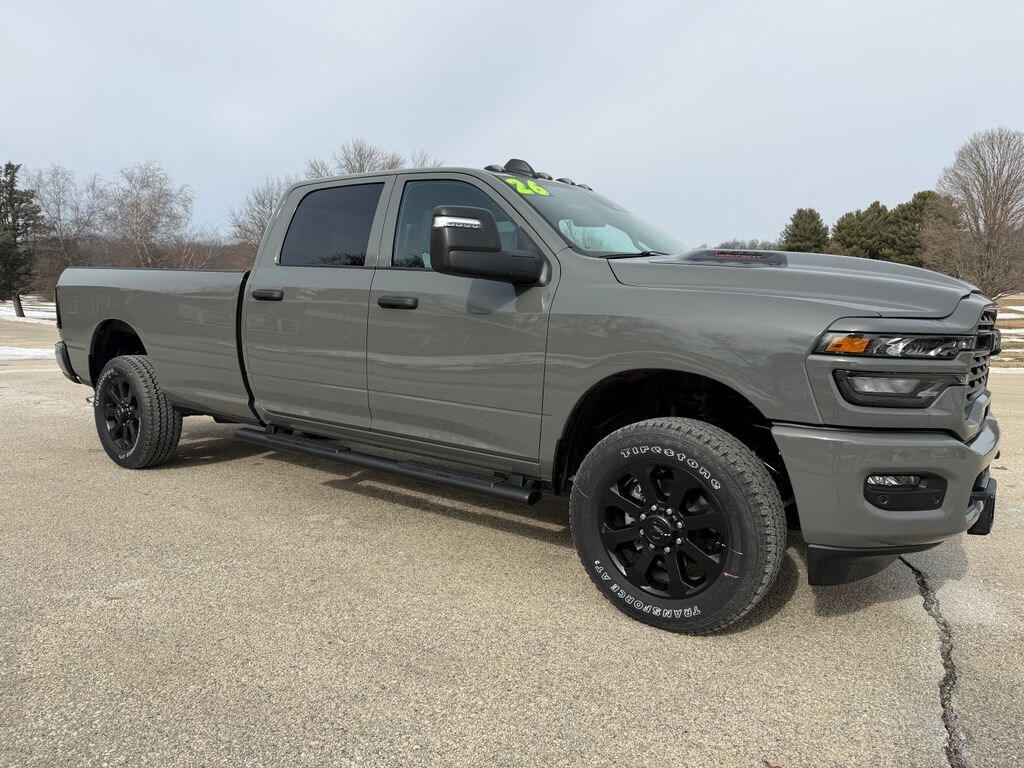 This 2026 RAM 2500 BLACK EXPRESS CREW CAB 4X4 LONG BOX runs the 6.4L V8 HEMI ENGINE. It's a big, steady gas V8 made for real work the kind you feel when you've got a load behind you heading out of Elkader.