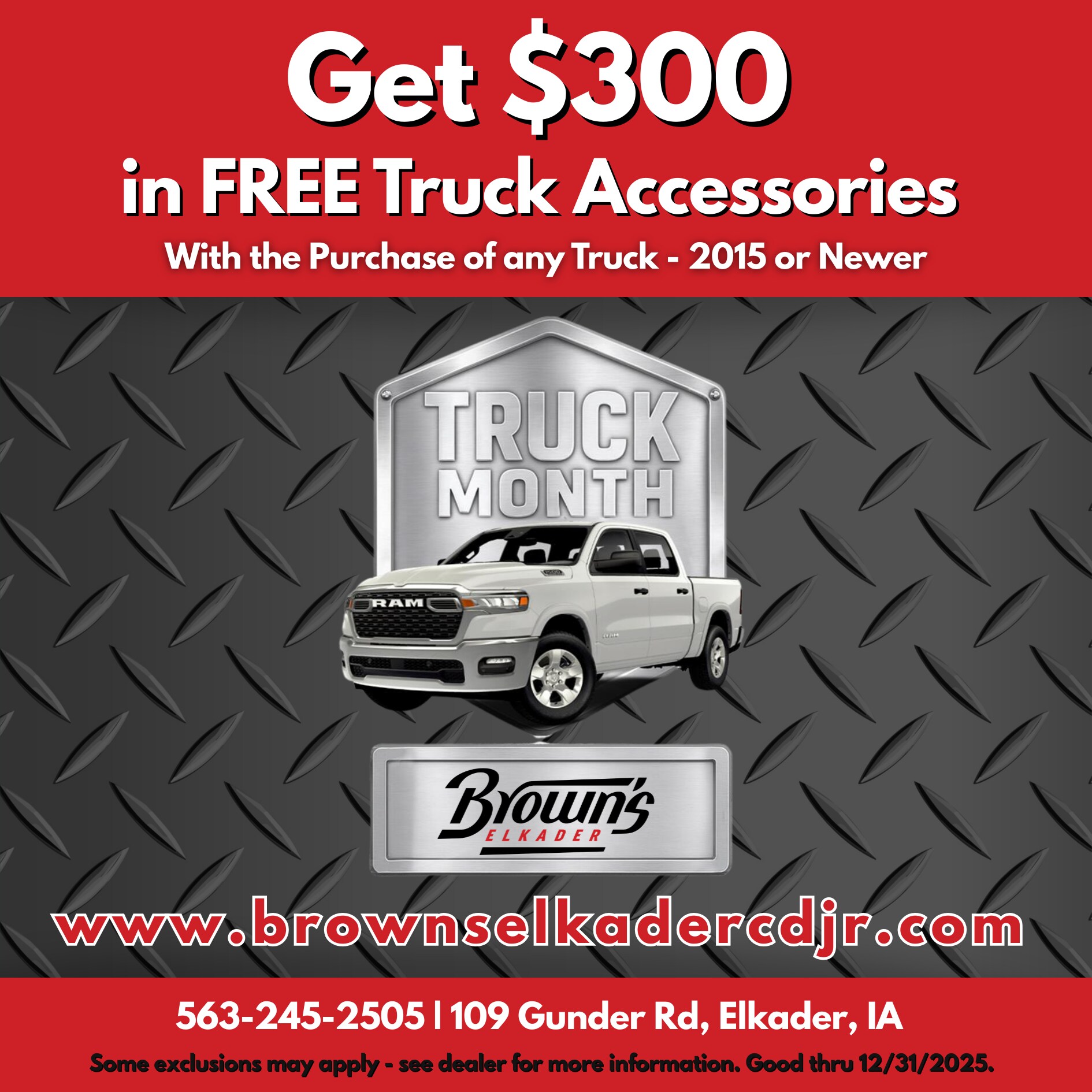 Offer applies to new or used full-size truck purchase 2015 and newer. Includes new truck orders. Prior orders and sales excluded. Offer valid until 12/31/25.