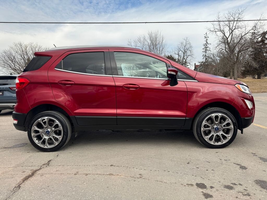LOCAL TRADE. This EcoSport Titanium 4WD is well equipped with desirable options that add comfort, convenience, and all-weather confidence. The 2.0L engine delivers smooth everyday power, while four-wheel drive helps when road conditions change. With the Cold Weather Package and exterior keypad entry, its especially well suited for colder climates and easy day-to-day access, all wrapped in the upgraded Titanium trim.